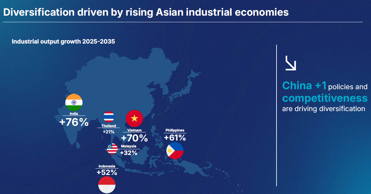 Luồng gió mới từ các nền kinh tế mới nổi khu vực Đông Nam Á và chính sách “Trung Quốc + 1” đem lại sự đa dạng cho chuỗi cung ứng và tăng cường mức độ cạnh tranh giữa các quốc gia, các phương thức vận tải.