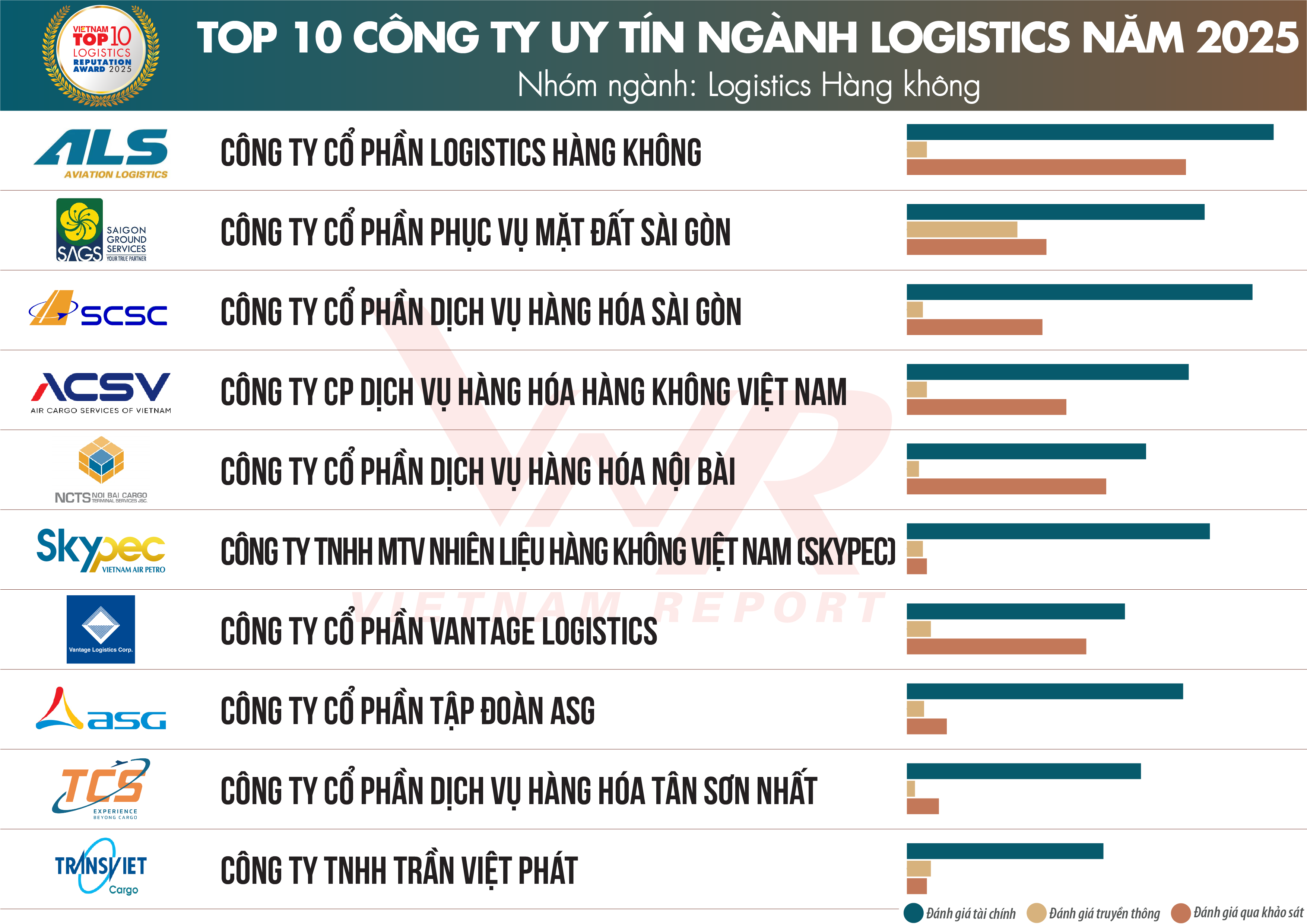 Sự kiện vinh danh Top 10 và Top 5 Công ty uy tín ngành Logistics năm 2025, được thực hiện bởi Vietnam Report, đã cho thấy một sự thay đổi đáng chú ý về thứ hạng, đặc biệt là sự nổi bật của nhóm Logistics Hàng không. Theo dữ liệu của Vietnam Report, việc xếp hạng uy tín được đánh giá dựa trên ba tiêu chí chính: Năng lực tài chính thể hiện trên báo cáo tài chính gần nhất; Uy tín truyền thông qua mã hóa các bài báo về công ty trên truyền thông; và Khảo sát các bên liên quan về chất lượng dịch vụ và vị thế doanh nghiệp.